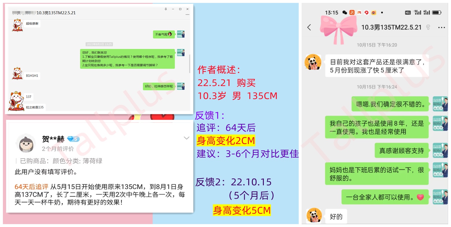 从5月15日开始使用原来135CM,到8月1日身高137CM了,长了二厘米,一天用2次中午晚上各一次,每天一天一杯牛奶,期待有更好的效果! | |||