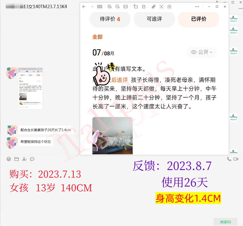 年龄:13岁140 性别:女 使用时间:1个月 ![]() 追评:1个月后 孩子长得慢,愁死老母亲,满怀期待的买来,坚持每天都做,每天早上十分钟,中午十分钟,晚上睡前二十分钟,坚持了一个月,孩子长高了一厘米,这个速度太让人兴奋了。 | |||